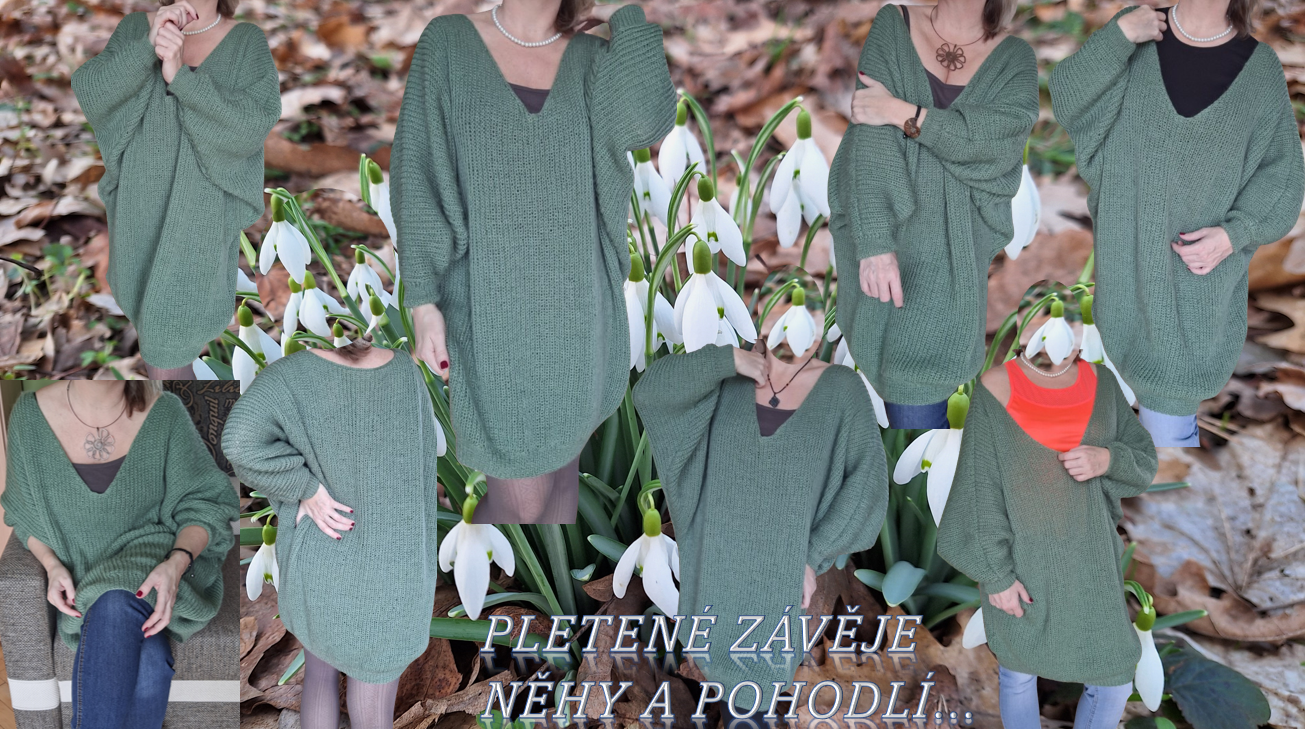 Pulovr povznesený nad čas, velikosti i střihy – z kvalitní turecké příze, v jednoduchém a vzdušném polopatentovém vzoru, s pružnými manžetami a rantlem na spodním okraji. Velký výstřih do „V“, netopýří rukávy od oblasti boků směřující rovně dolů, měkkost, splývavost, ležérnost. Lze nosit na mnoho způsobů a nikdy se nezmýlíte…