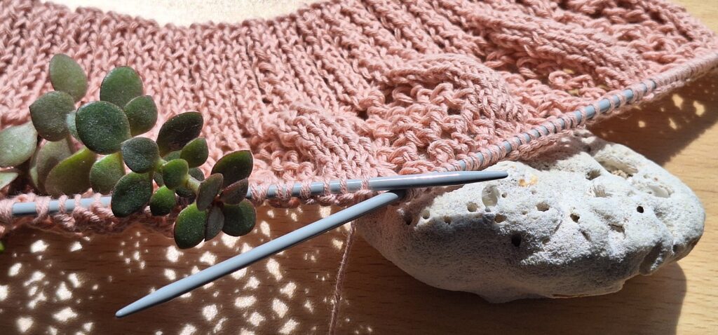 Průběžně fotím: jednak rozložené schnoucí díly, jednak pak jejich následné sešívání, jednak případné pletací potenciální pastičky (4P? – hm…) – třeba vypracování výstřihu, postup zhotovení nopku apod. Návody se snažím zpracovat tak, aby neurazily pokročilejší pletaře, ale zároveň byly srozumitelné a kompletní pro začátečníky. Samozřejmě, je to z mého pohledu… To se netýká jen detailnosti, ale i postupů: každý jsme jiný, každý se učíme jinak, a hlavně chápeme jinak – někdo dává přednost slovnímu popisu, někdo raději mrkne na obrázek, je to zkrátka subjektivní. Co je pro jednoho málo, pro druhého je zbytečně moc. Co se líbí jednomu, neosloví naprosto druhého. I to jsem si musela ujasnit – nikdy neuspokojím dokonale všechny. Zkrátka to nelze. A je to tak v pořádku. Jistě mi dáte za pravdu, že platí obecně. Ale proto to nepřestanu dělat, spoustě lidí se díky tomu může otevřít krásný svět…